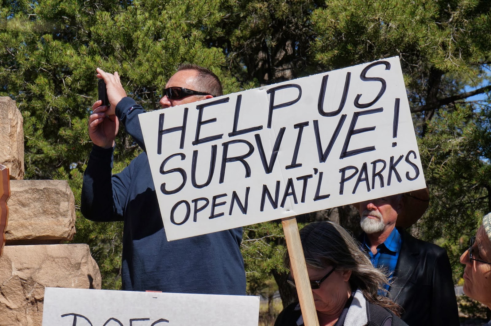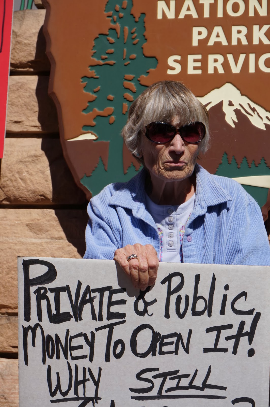 I arrived at the South Gate of Grand Canyon just as a protest began. Business owners and employees from the town of Tusayan, park concession staff, and tourists gathered at the gate to hear why park Superintendent Dave Uberuaga is not able to re-open the park.
